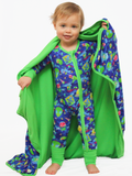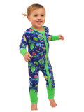 Adorable alien print zip romper. OEKO-TEX® STANDARD 100 certified modal. Double zip for easier diaper changes. Each piece is unique; print placement may vary. To avoid toxic chemicals, this fabric is not treated and is not flame-retardant. Wear tight-fitting and keep babies away from fire.