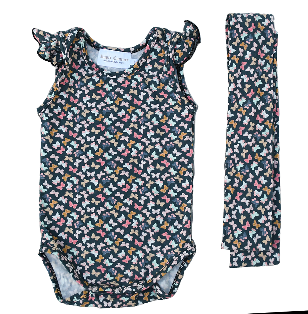 For the littlest adventurers, our Wanderlust Set is as adorable as it is comfy! Its one-piece design featuring butterflies and a matching head wrap is perfect for your little explorer. Made of 90% cotton and 10% spandex, this set is great for any outdoor escapade! (Or just for lookin' cute!)
