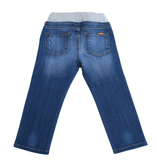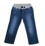 These Distressed and Dip Wash Blue Jeans have a slight rugged appeal and feature an adjustable elastic waist band for maximum comfort. The fabric itself has an excellent stretch so as not to restrict movement, while still maintaining it's shape and remaining strong and durable. They also come with an extra button, just in case something happens to the first.
