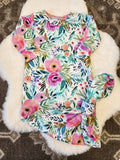 Pink Floral Gown & Bow Set