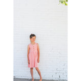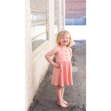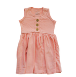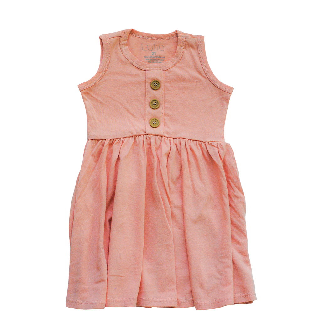 Simple, yet beautiful coral pink dress with lovely wood buttons.