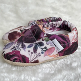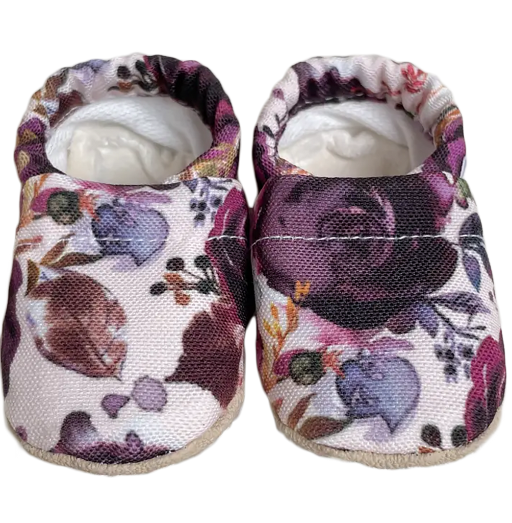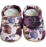 Welcome your little one in style with our Elizabeth baby shoes! Made of organic and recycled materials, these purple floral beautys will have your munchkin looking as fresh as a daisy. (Cuteness guaranteed!)