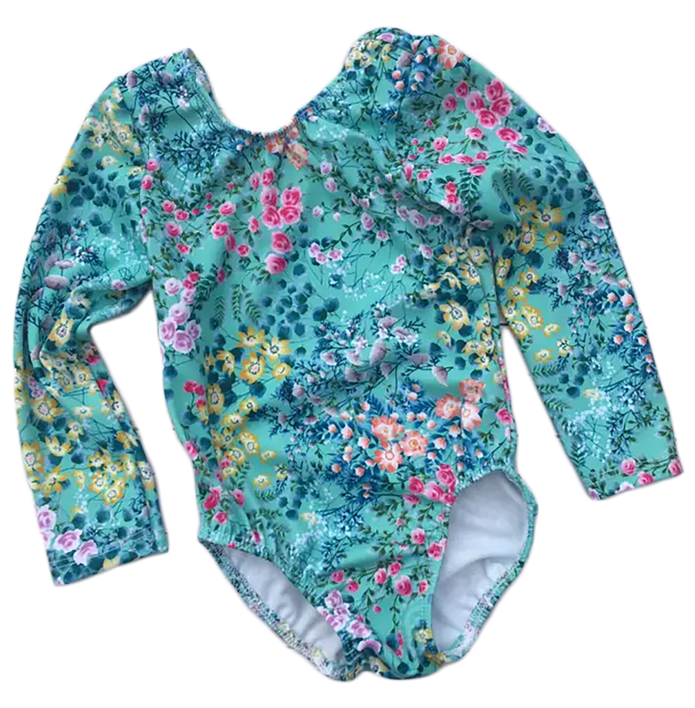 Playfully feminine and perfect for gymnastics and swimming, our Meadow Leo is the perfect way to stand out in style! Featuring a stylish green floral print on a classic leotard long-sleeve style - a must-have for any athlete who loves to look uniquely fashionable.