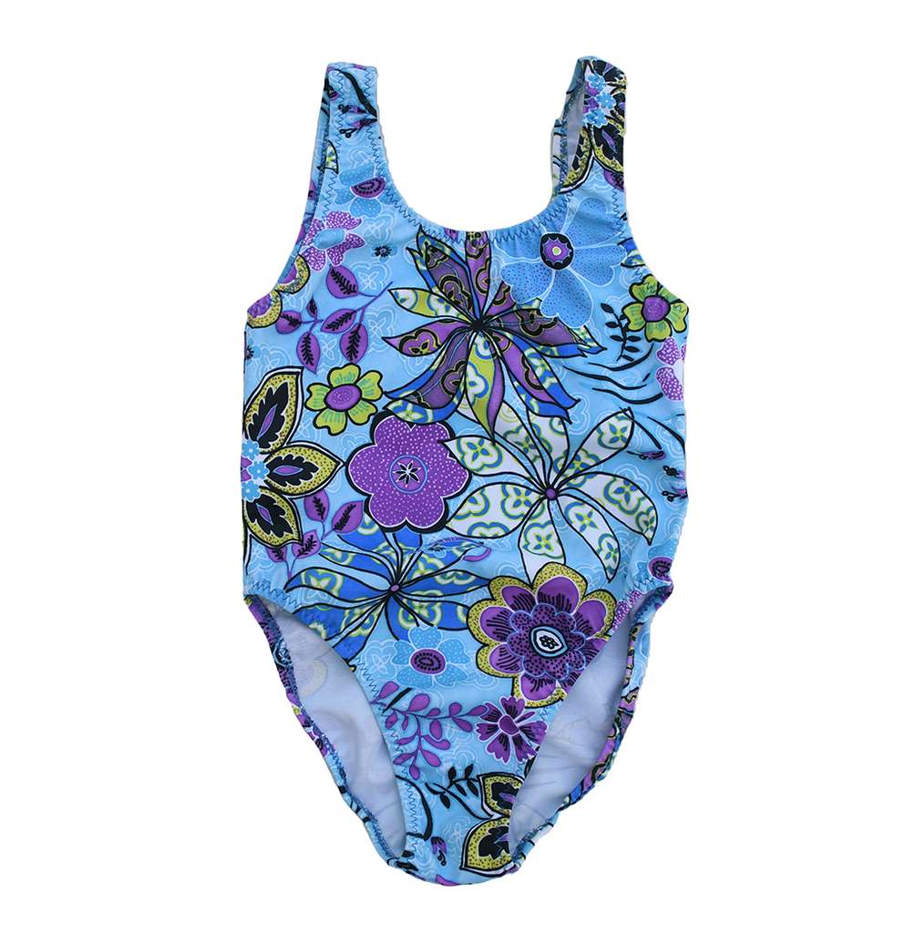 Ready to splash into summer? The Topsy Turvy Blue is the perfect choice for fun in the sun! With a stylish print of blue florals, your girl will love this ultra-cute bathing suit when taking a dip! Make a splash this summer with the Topsy Turvy Blue! Woohoo!
