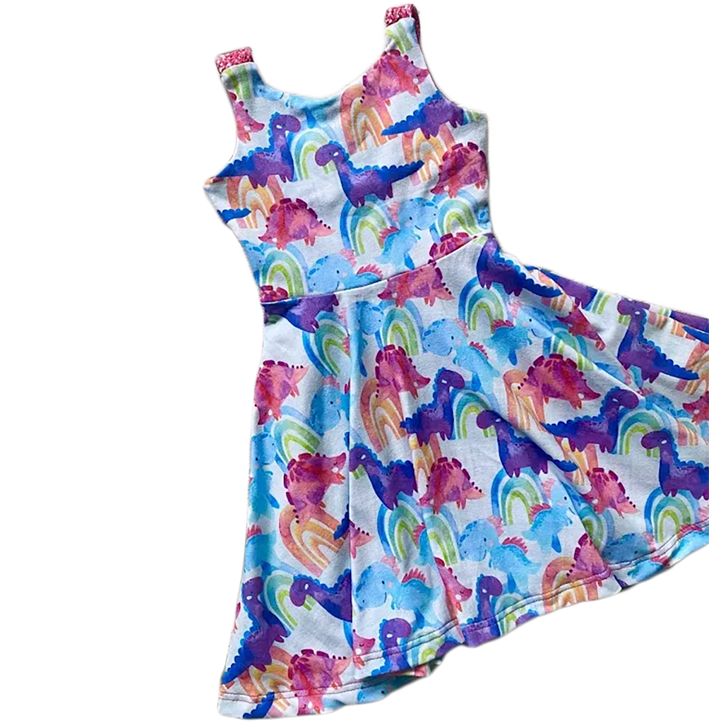 Your little girl will be pleased as punch wearing the Dino Rainbow dress! It will keep her snug and stylish with its grow-with-me design and fun rainbow and dino print in cheerful purple. It's the rainbow at the end of her wardrobe search!