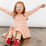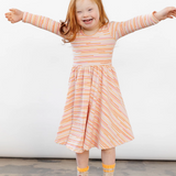 Simple and elegant horizontal stipe dress with fun bright colors. Super comfortable, with plenty of stretch.